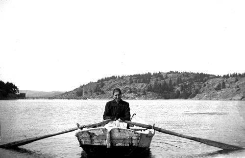 Hilda Olsson på Stora Askerön ror från Lillön till Storön. Foto: I. Pettersson
